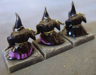 So I've been painting up some Night Goblins from the Warhammer sprues that had been stored in the attic. First up, here are 3 Goblin netters: